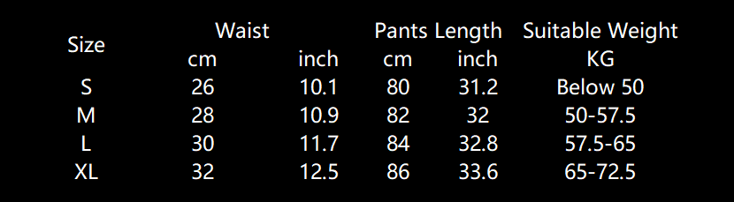 S: 32 in | M: 34 in | L: 36 in | XL: 38 in